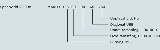 Vi väljer SU16 100-90-65-650 då vi i detta fall vill ha ett lågt fackverk.
